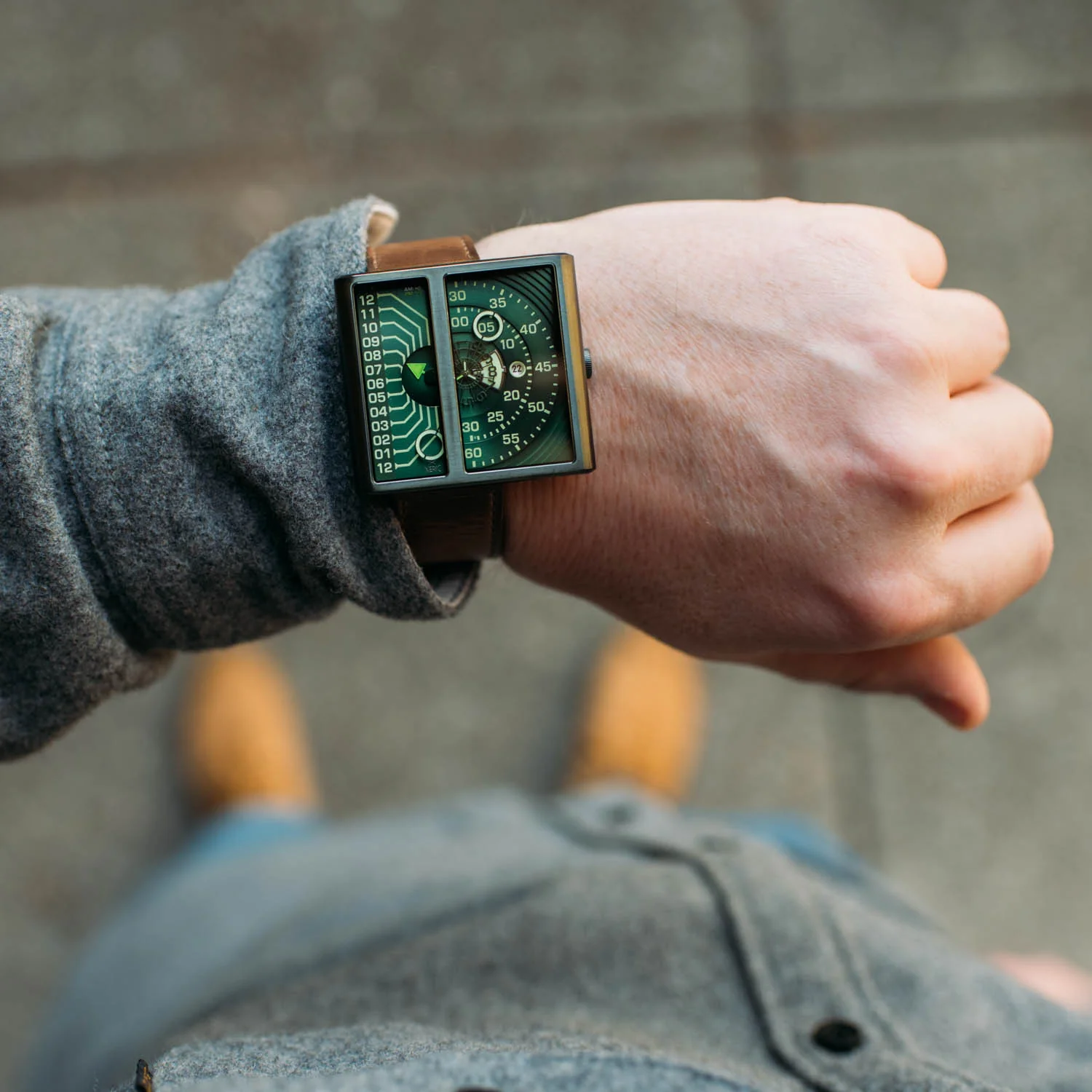 When the lights go out, the Soloscope II really shines. We redesigned our signature halo hands so they glow brighter and longer, and the dial features an abundance of Super-LumiNova; nicknamed "the jellyfish" because of the impressive glowing pattern it makes when the watch is turned on its side in the dark. As always, our straps are made from American-sourced Horween leather and quick release mechanism for tool-less strap changes.