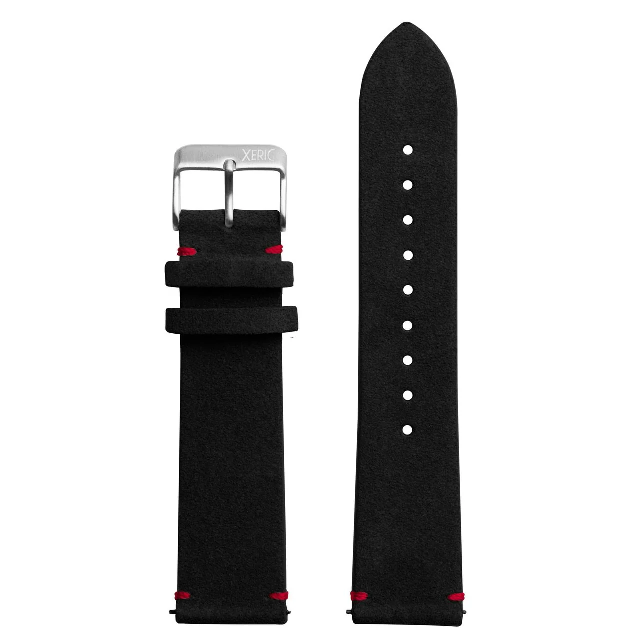 Xeric 20mm Italian Suede Black Red Strap Silver Buckle